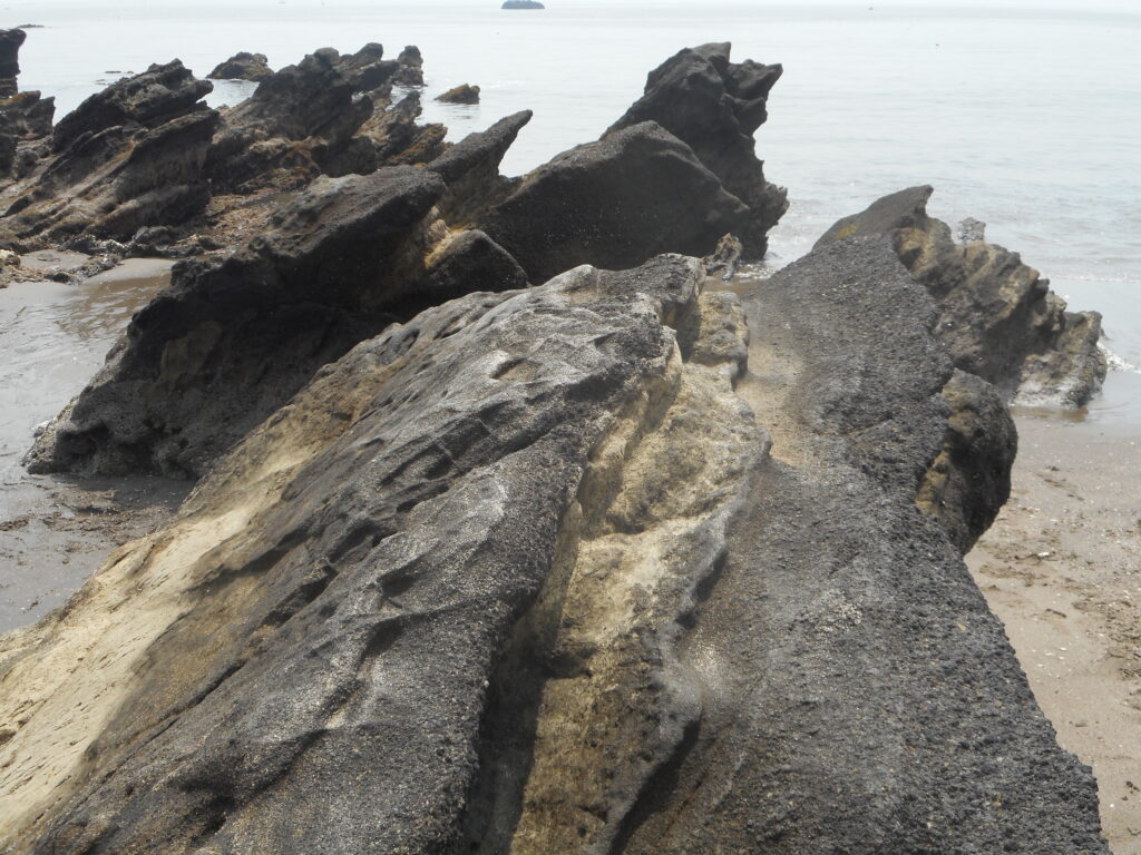 今回紹介する2種、ウミベカトリバエ Lispe aquamarina Shinonaga and Kano(写真上)とイワミハマカトリバエ Lispe pseudohirsutipes Kakinuma and Kurahashi(写真下)は同じ海岸で採集されましたが、ウミベカトリバエが波打ち際の岩場(岩礁)に集まる習性があるのに対し、イワミハマカトリバエは河口や海岸の水際の砂上に集まる習性があります。