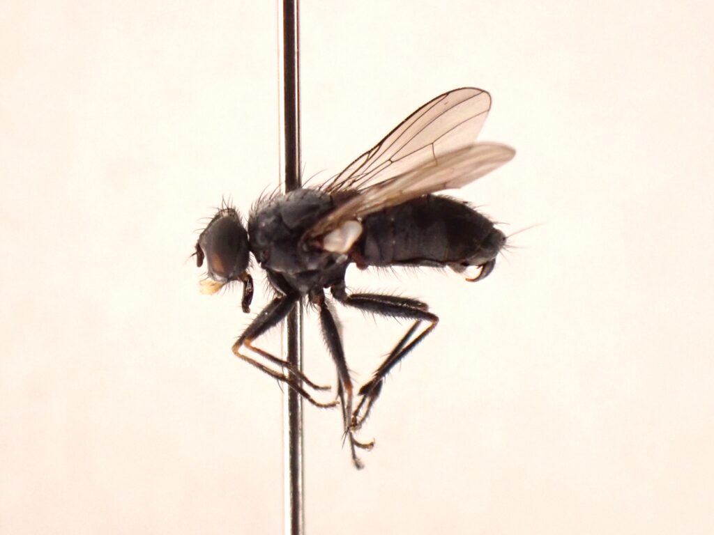 カトリバエ属 Lispeはイエバエ科 Muscidaeに属する昆虫の一群であり、世界中に広く分布しています。本属の種は湿地や海岸、河川周辺などの水辺環境に生息し、カ科 Culicidaeやユスリカ科 Chironomidaeのように体が小さく,軟弱な双翅目昆虫類を捕食することが知られています。日本においては20種の分布が確認されており、一部の種は海岸環境に生息しています。